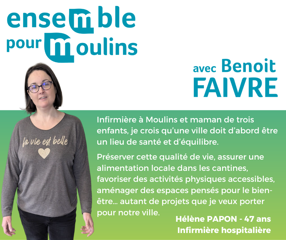Je suis persuadée que, grâce à une équipe soudée et à une écoute active des habitants, nous pouvons engager Moulins dans un mouvement d’embellissement durable et cohérent.