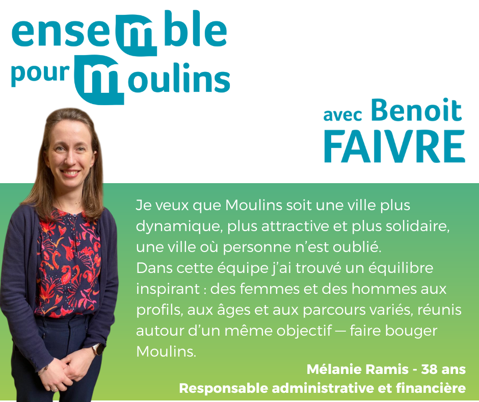 Ce mélange de jeunesse, d’énergie et d’expérience, je le trouve essentiel pour construire un projet solide et ambitieux pour notre ville.Ce que je souhaite, c’est que Moulins devienne plus dynamique, plus attractive et plus animée. Les domaines qui me tiennent particulièrement à cœur sont l’aménagement, le cadre de vie, la valorisation du patrimoine, mais aussi la solidarité. Parce qu’une ville vivante, c’est avant tout une ville où l’on veille au bien-être de chacun et où personne n’est oublié.