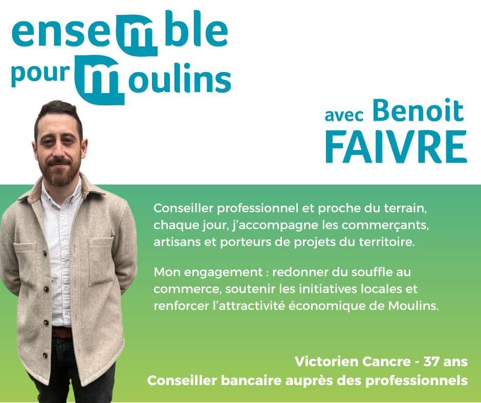 Je suis convaincu qu’il faut encourager l’initiative économique, soutenir les idées réalistes, redonner de l’air aux commerces du centre-ville, attirer de nouveaux professionnels de santé, de nouveaux entrepreneurs… et pour cela, rendre Moulins plus attractive, plus lisible, plus dynamique.